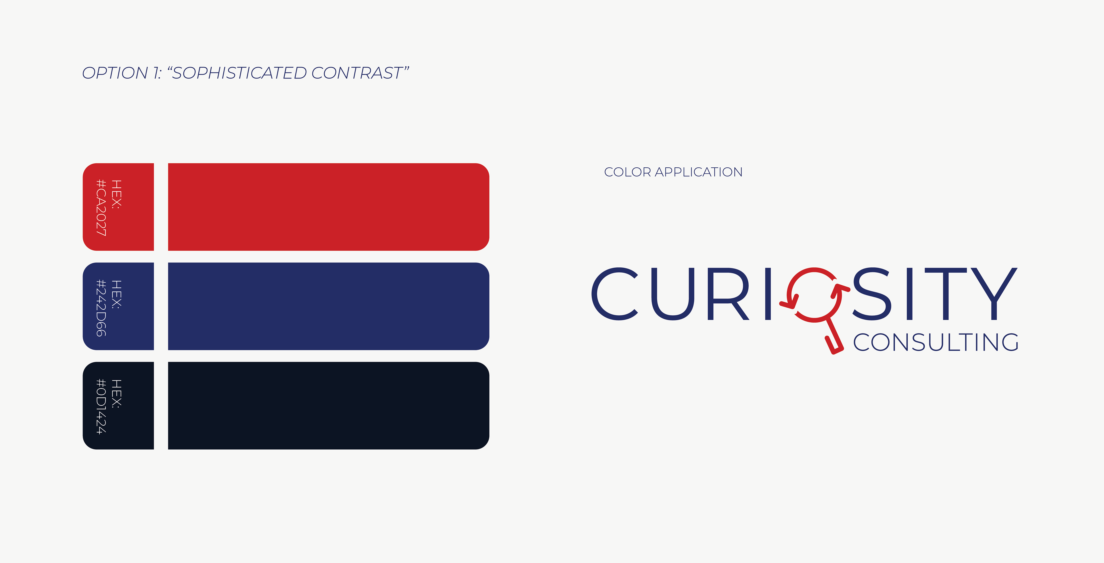 Once the final logomark was chosen, possible color applications then explored similar yet nuanced differences in 3 palettes. The client chose a combination of Option 1 and Option 3, with a stronger level of contrast and expanded color options from the brand's original two-color palette.